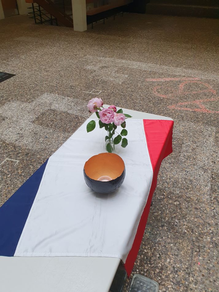 Gemeinsam mit Millionen Kollegen und Schülern in Frankreich haben heute um 11:15 Uhr auch die Mitglieder der GEG-Schulgemeinschaft Samuel Paty und den Opfern der folgenden Anschläge in Nizza mit einer Schweigeminute gedacht
